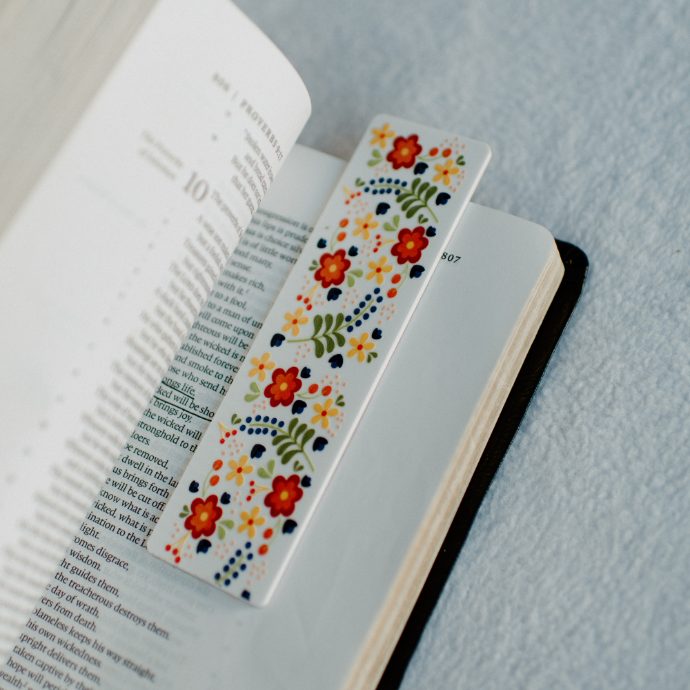 Add a touch of whimsy to your reading routine with our charming Floral Bookmark. With a delicate white design and subtle pops of colorful flowers, this elegant bookmark will keep your place in style. Perfect for the bookworm who loves a hint of nature.