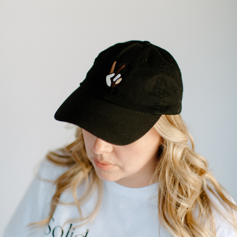 Elevate your style with our Skin Tone Peace Cap. Featuring an embroidered peace sign made of diverse skin tones, this black cap with adjustable strap promotes solidarity, togetherness, and acceptance in society. Let's spread the message of unity and embrace our differences together.
