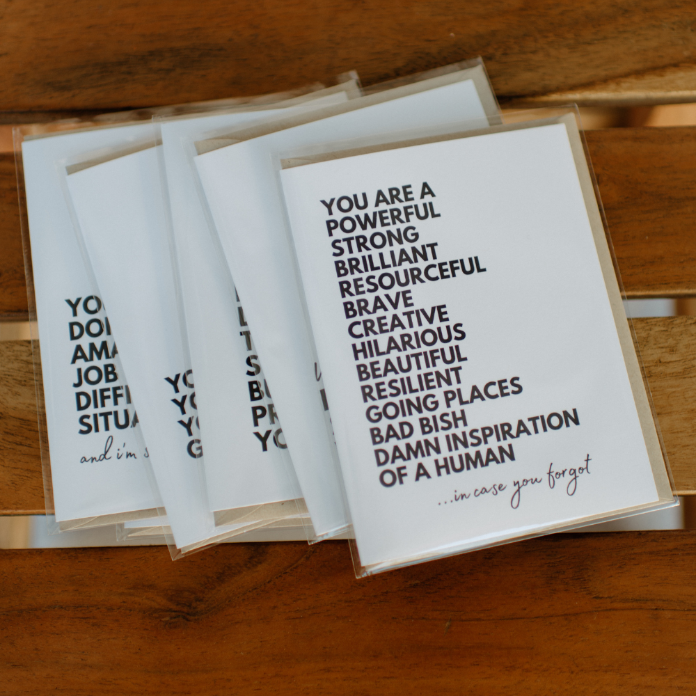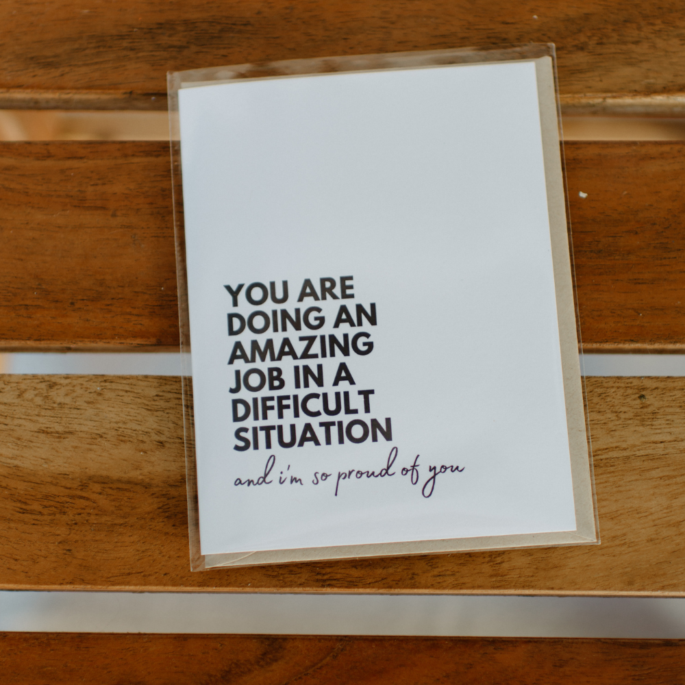 This card is a perfect way to show your support and compassion to someone going through a tough time. Made with heavy cardstock, it comes with a free envelope and a blank inside so you can personalize your message. The black script with the empowering message "you are doing amazing job in a difficult situation" will let them know how proud you are of them.